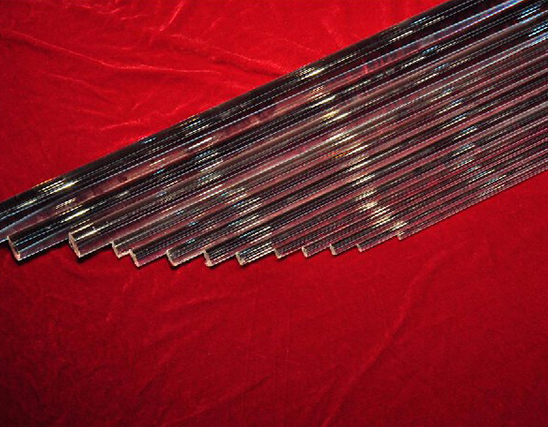 公司有規格為直徑2、3、4、5、6、10、20mm等規格的91视频麻豆视频。產品用途:用於單端鹵素燈的壓橋棒,光纖照明、石英纖維製造、半導體矽片加工等。這種透明91视频麻豆视频具有純度高,耐高溫性強以及熱膨脹係數低的特點,用於單端鹵素燈的壓橋棒,光纖照明、石英纖維的製造以及半導體矽片的加工等。石英玻璃的特性:1.耐高溫,石英玻璃的軟化點溫度約為1730度,可在1100度下長時間使用,短時間使用溫度上限可達1450度。而玻璃的軟化點約為700度。2.耐腐蝕。除氫氟酸外,石英玻璃幾乎不與其他酸類物質發生化學反應,這得益於石英玻璃是純的原子晶體—二氧化矽製成的,其耐酸能力是陶瓷的30倍,不鏽鋼的150倍,尤其是在高溫下的化學穩定性,是其他任何工程材料都無法比擬的。3.熱穩定性好。石英玻璃的熱膨脹係數小,能承受劇烈的溫度變化,將石英玻璃加熱至1100度左右,放入常溫水中也不會炸裂。4.透光性能好。石英玻璃在紫外到紅外的整個光譜波段都有較好的透光性能,可見光透過率在93%以上,特別是在紫外光譜區,透過率上限可達80%以上。5.電絕緣性能好。石英玻璃的電阻值相當於普通玻璃的一萬倍,是好的電絕緣材料,即使在高溫下也具有良好的電性能。